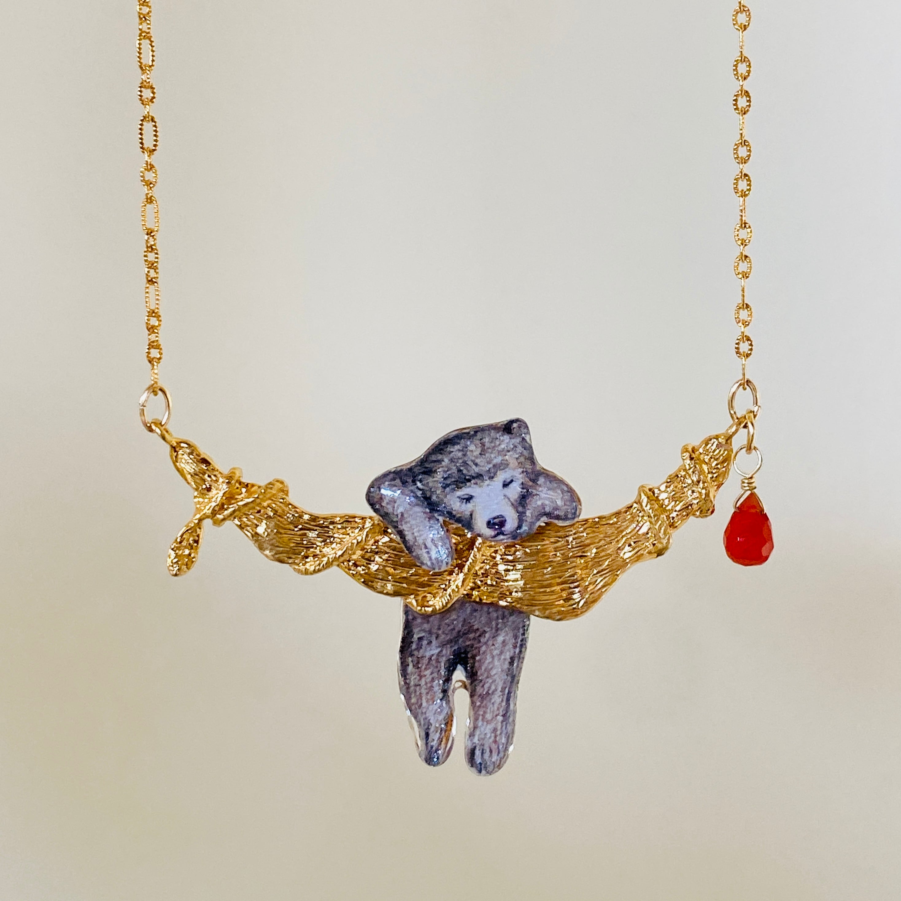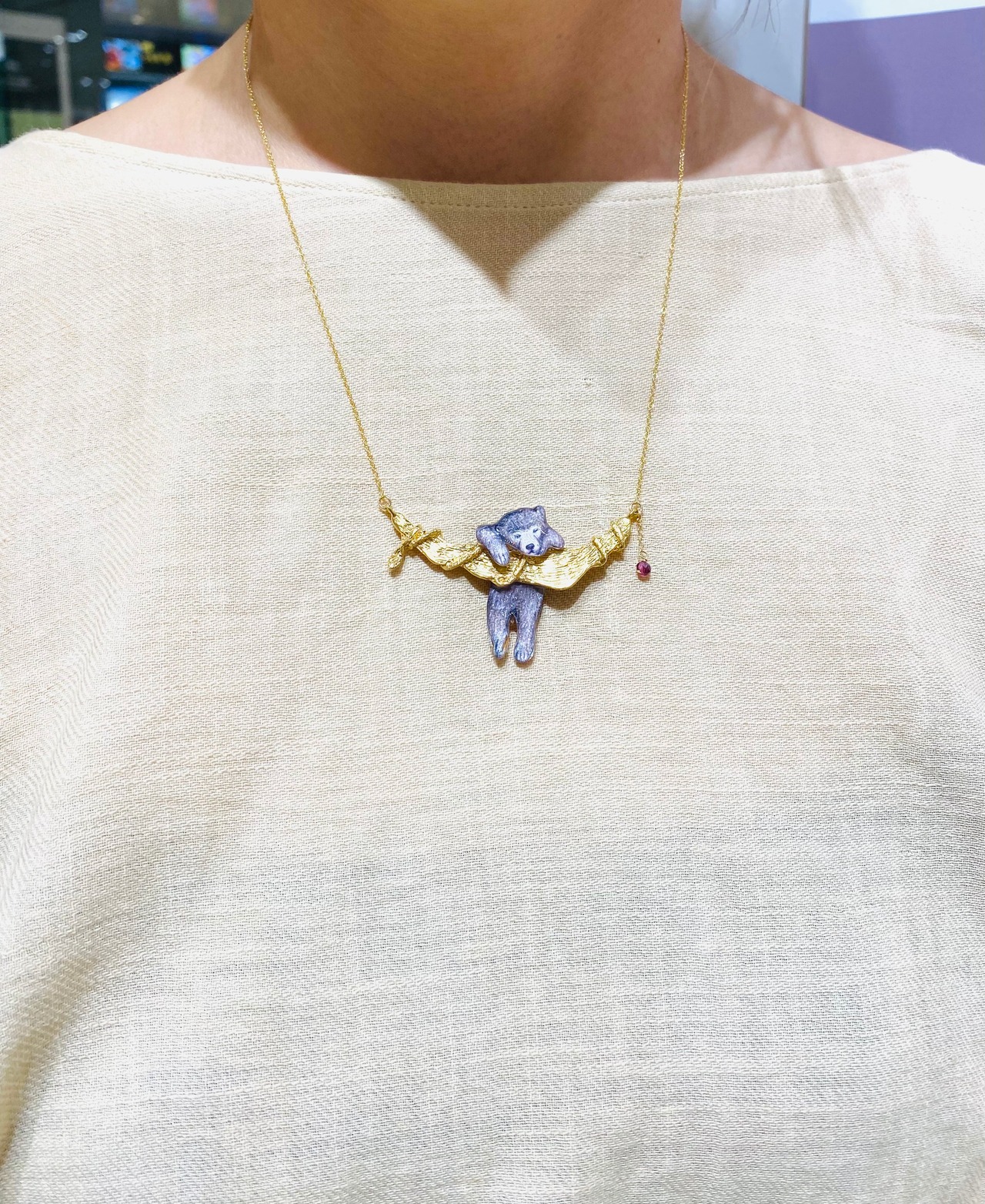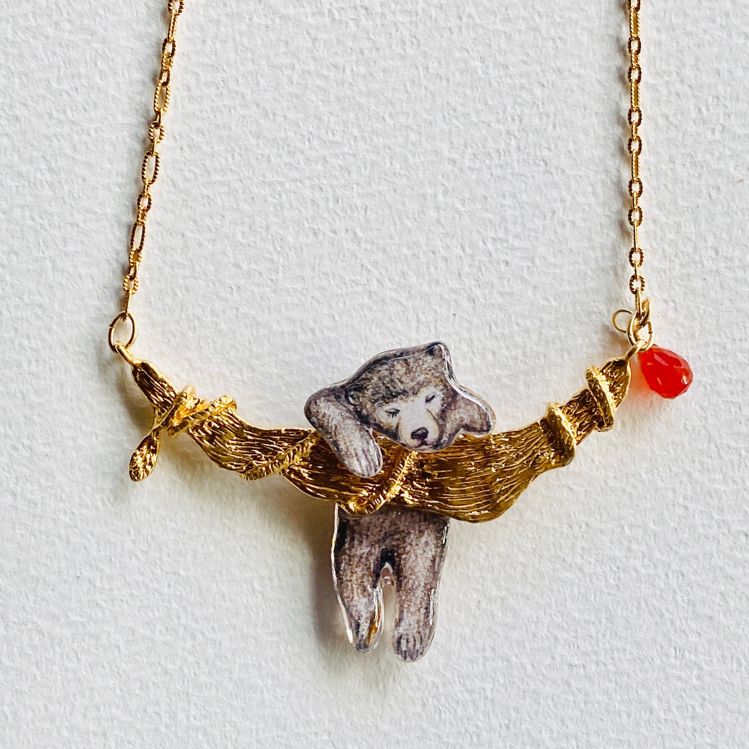 チェーン/k14gf 、パーツ/樹脂、枝/silver925+k18コーティング、天然石/カーネリアン、ガーネット