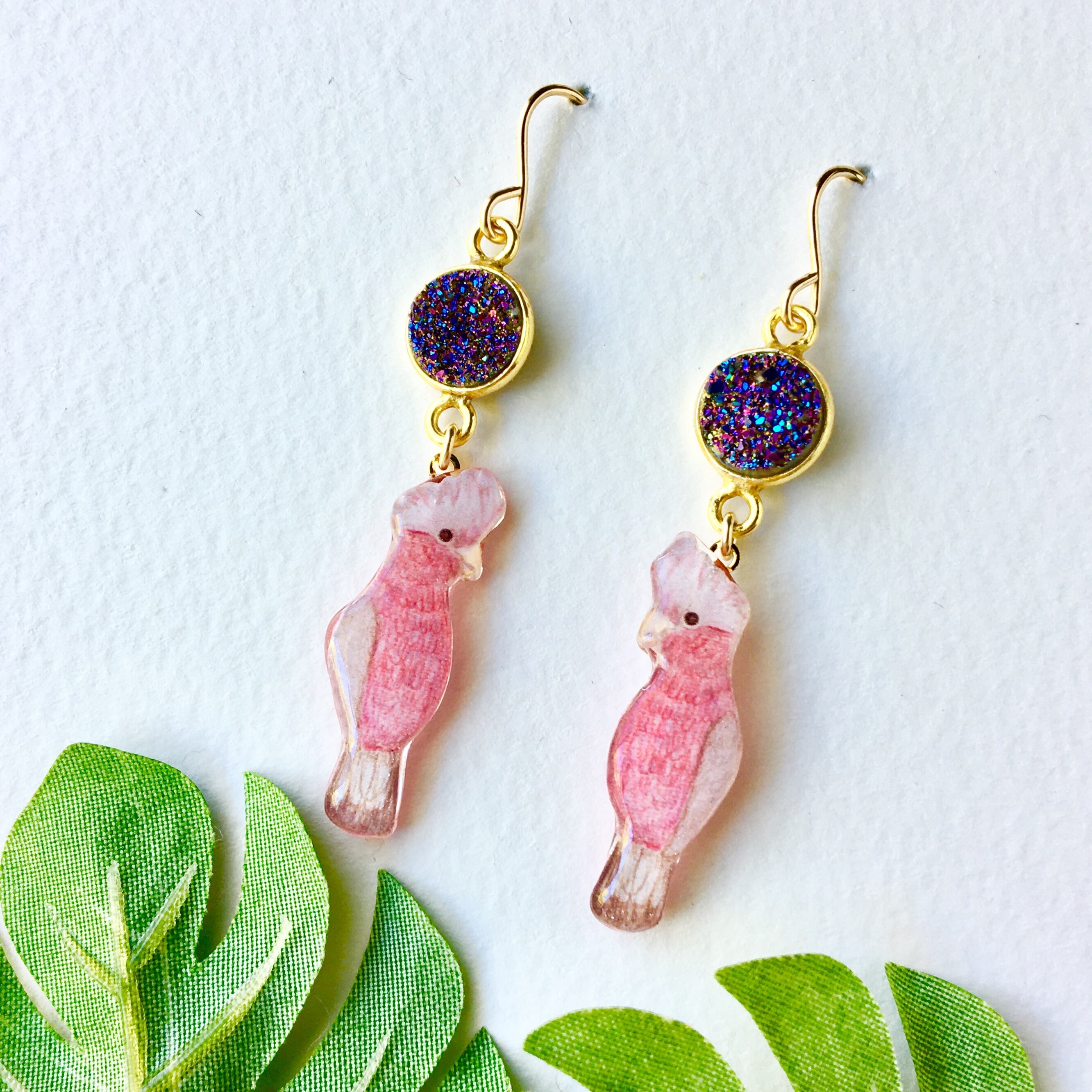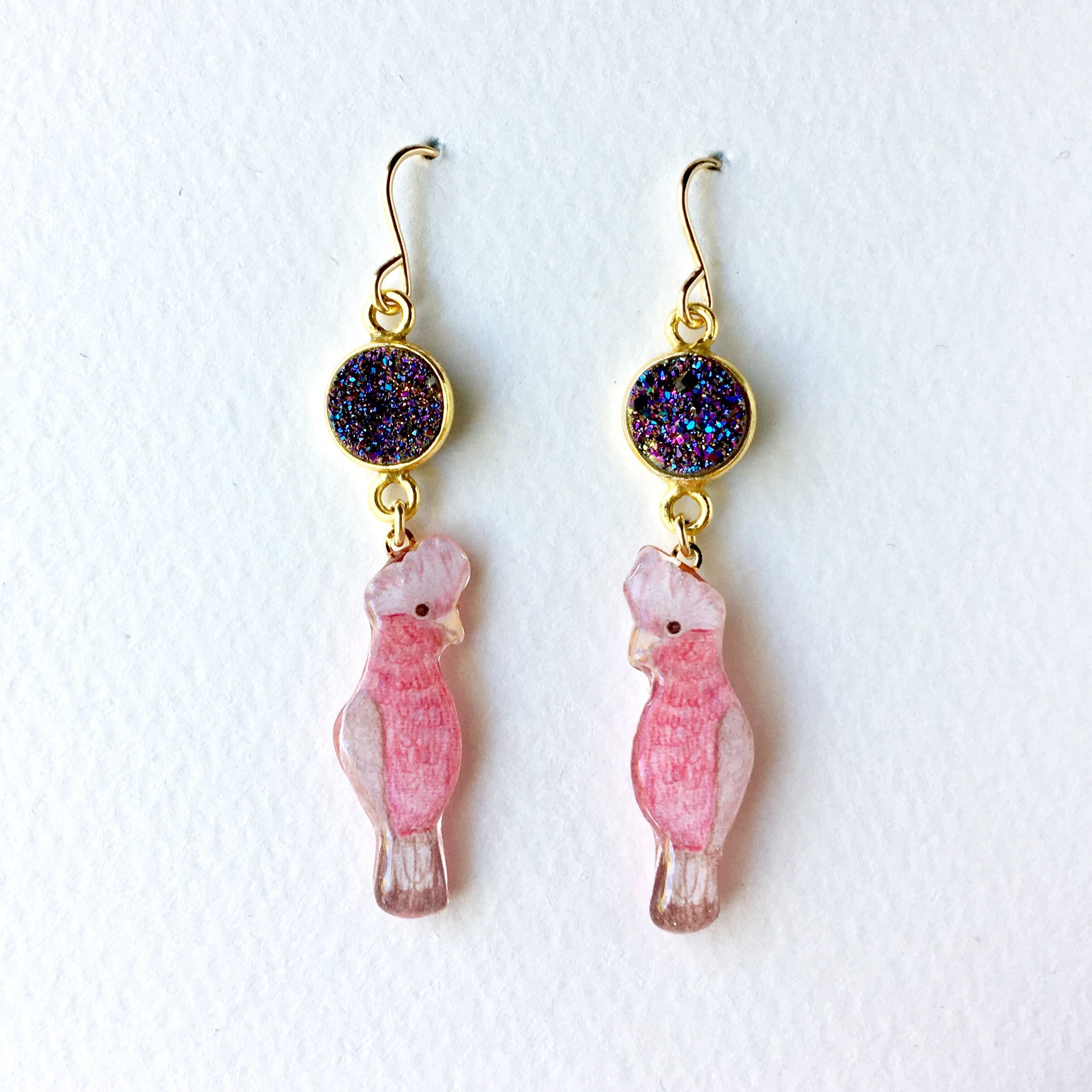 オーストラリアなどに生息している、ピンクとグレーが綺麗なモモイロインコさやを。キラキラ光るムラサキ色のドゥルージー付きで素敵な雰囲気です♪