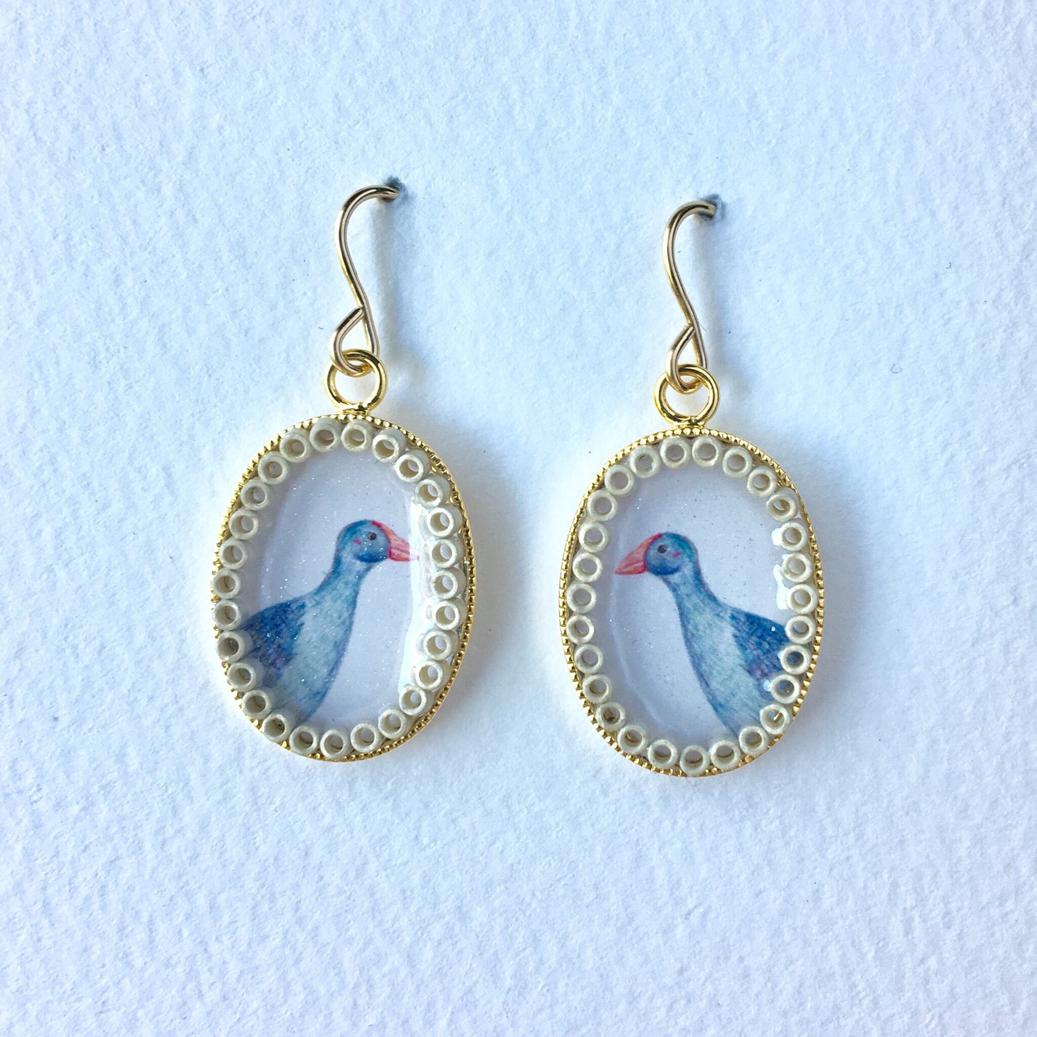 ニュージーランドでよく見られる、クチバシが面白い鳥プケコのアクセサリー。