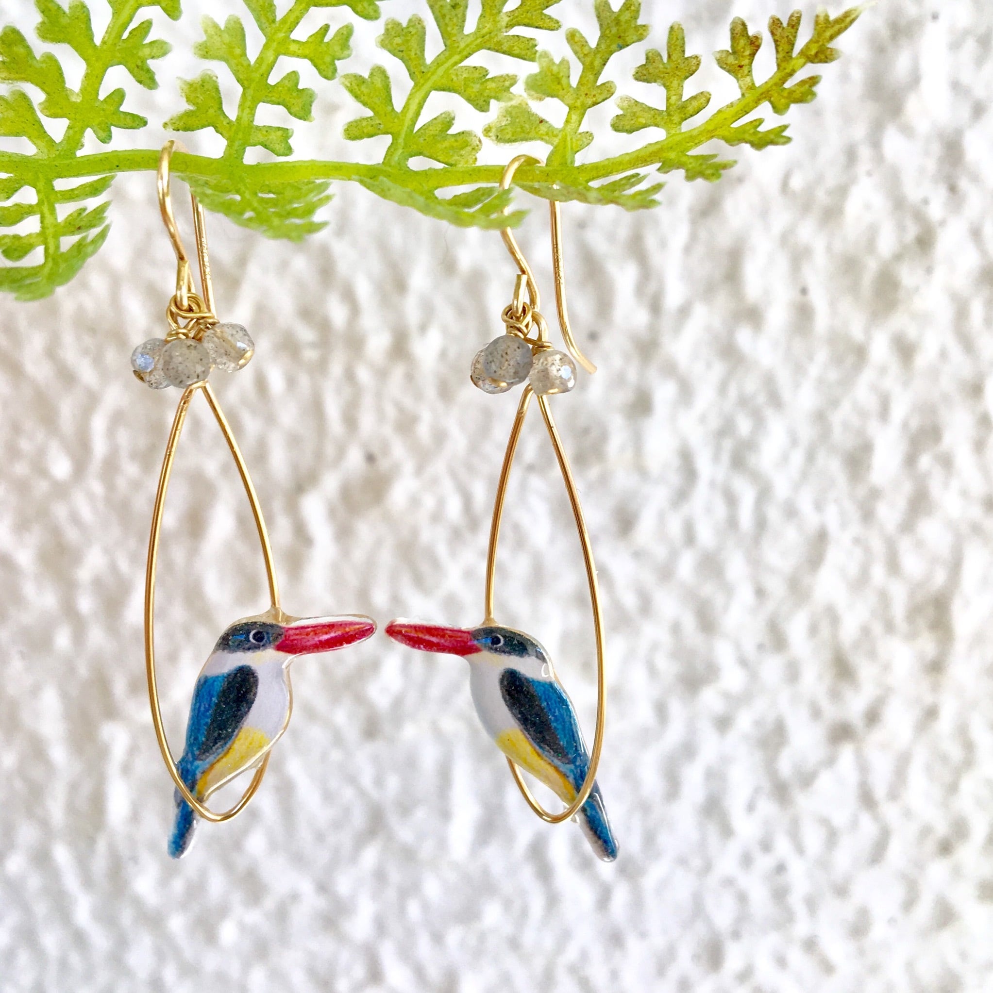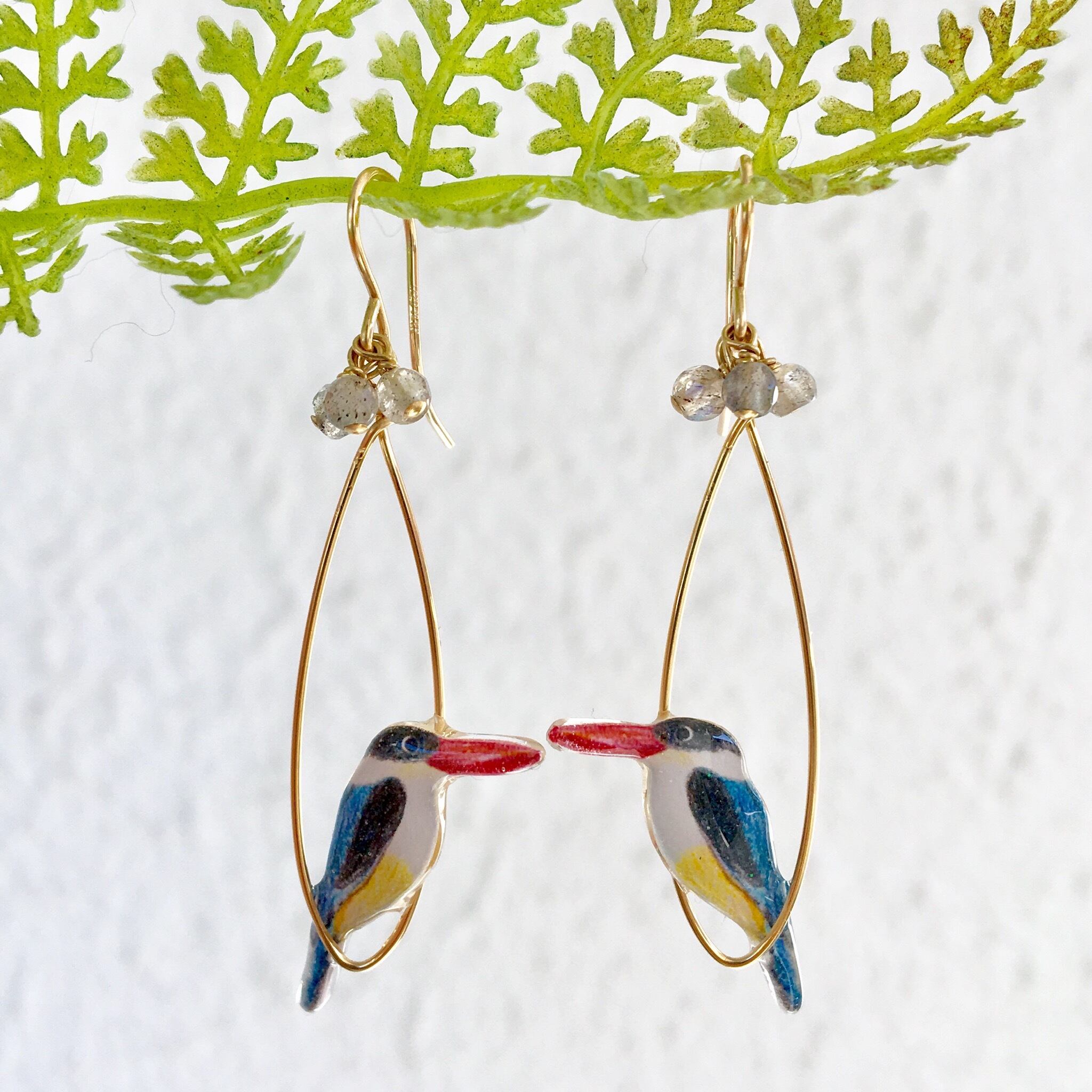 カワセミ科のヤマショウビンさん。天然石のラブラドライト付きで大人っぽい一品です。