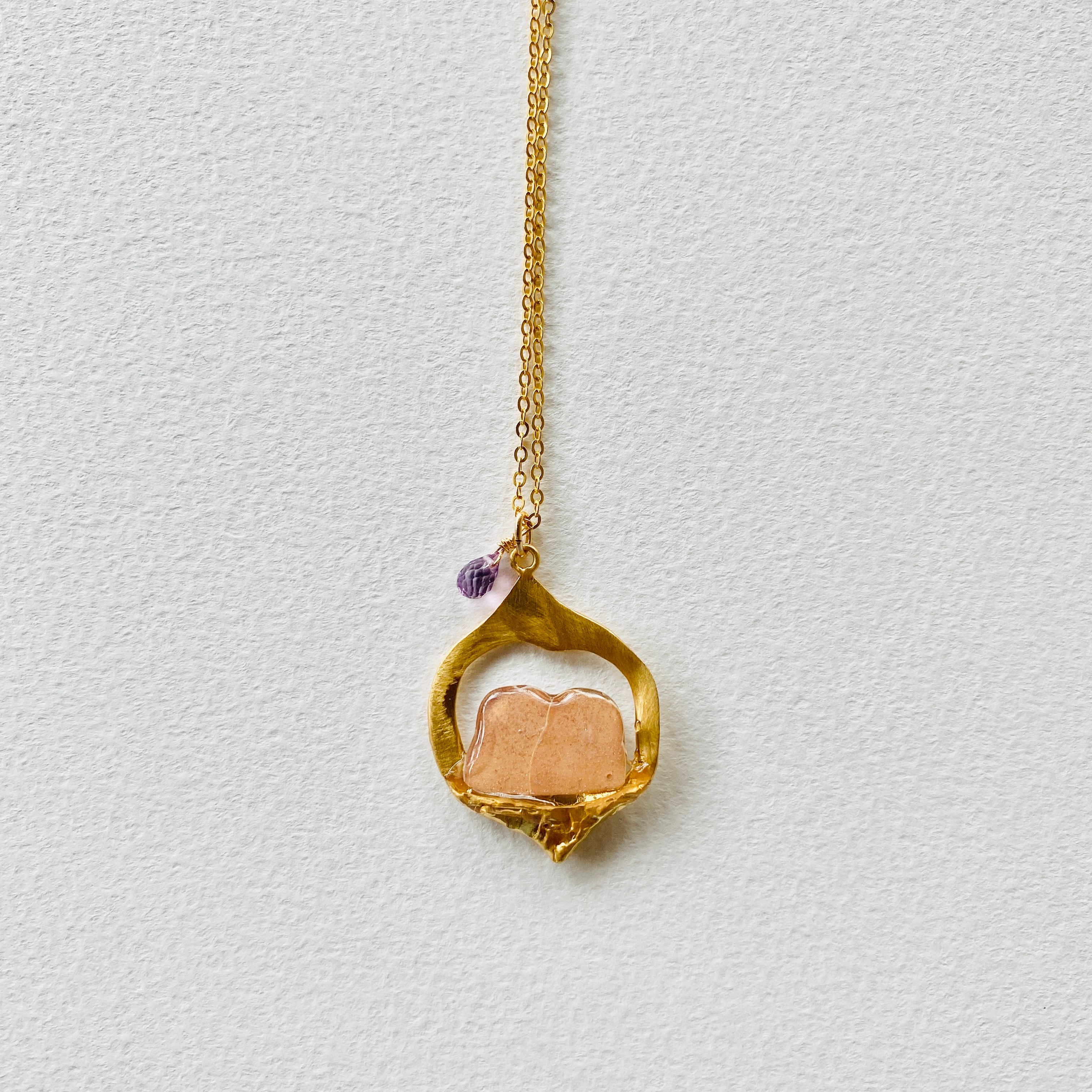 チェーン/k14gf 、パーツ/樹脂、木/silver925+k18コーティング、天然石/アメジスト
