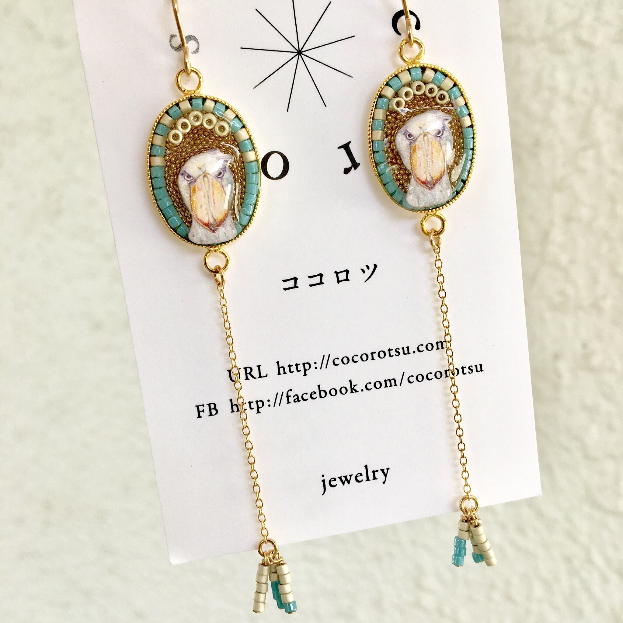 動かない鳥で有名なハシビロコウさん。一見アンティーク風のアクセサリー。でもよく見るとハシビロコウさんがいる、ギャップが楽しいアクセサリーです。