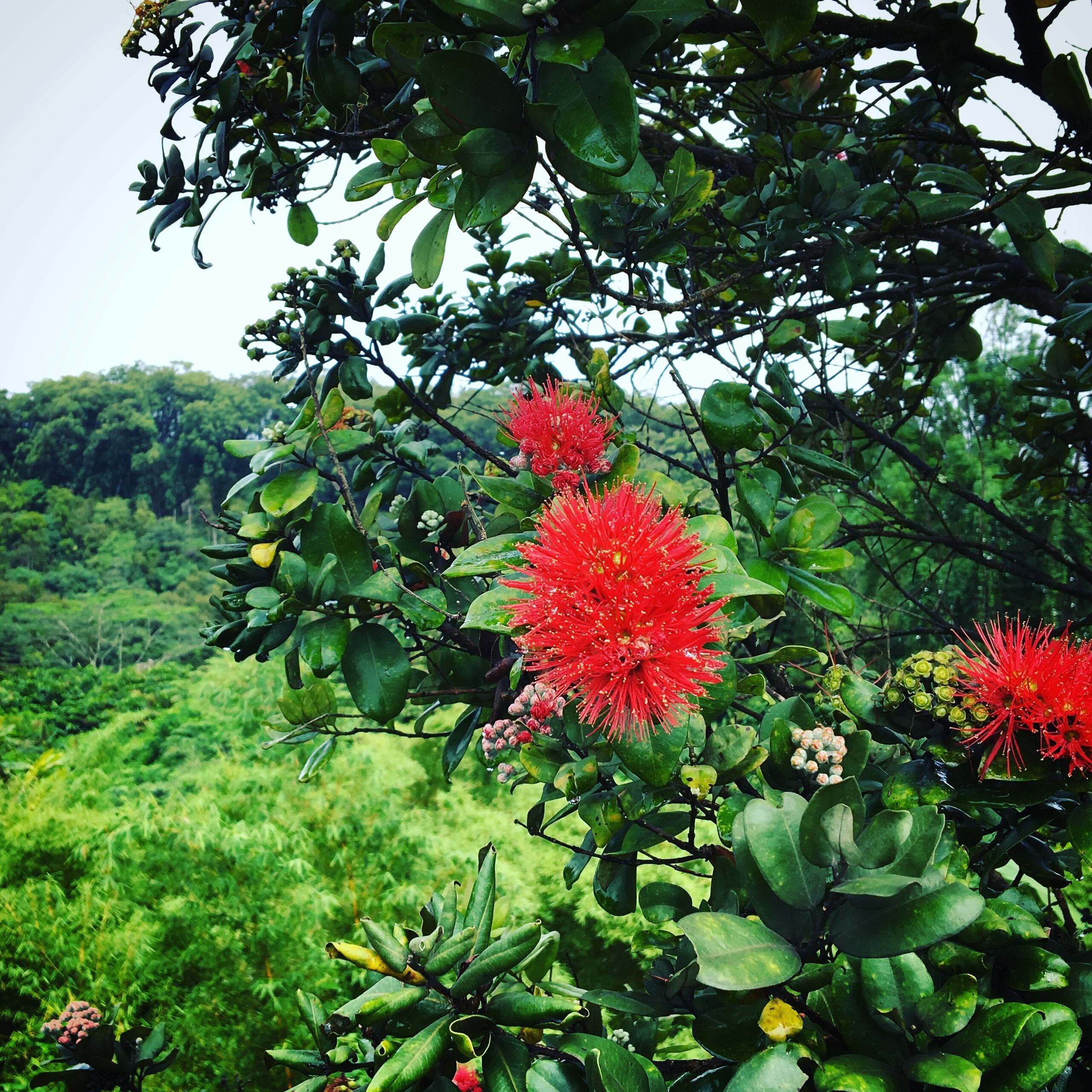 外来種の植物に絡みつかれて苦しそうなオヒアレフアの姿もいくつかみました。そんな中でもたくましく生きるオヒアレフアを表現したアクセサリーです。