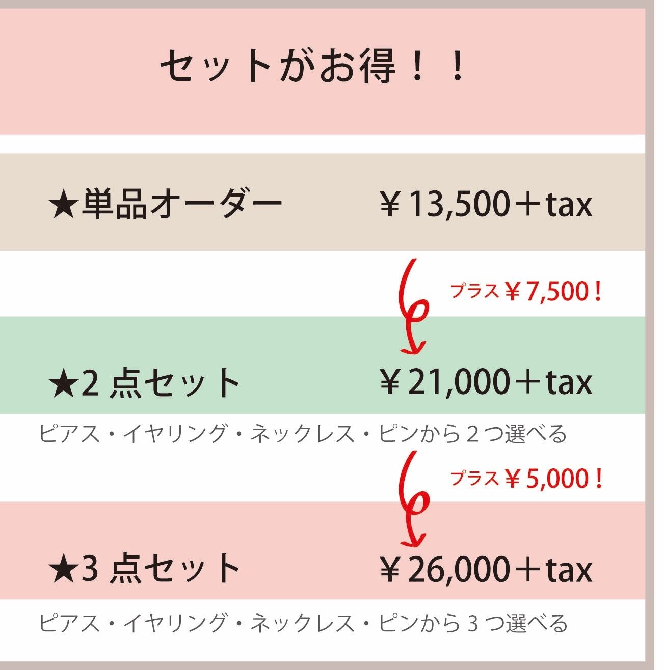 ★ピアス、イヤリング、ピン、ネックレスから2点お選びいただけます。