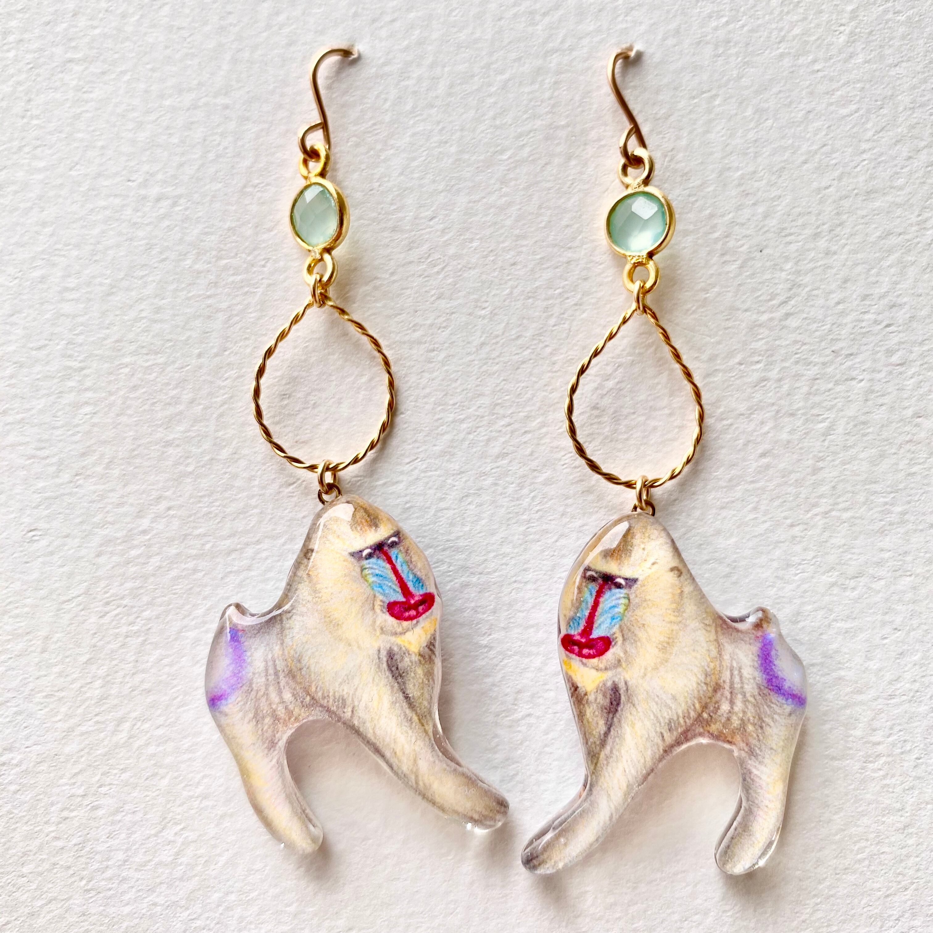 アフリカガボンでみたカラフルなマンドリルさんのピアスです。天然石カルセドニー付
