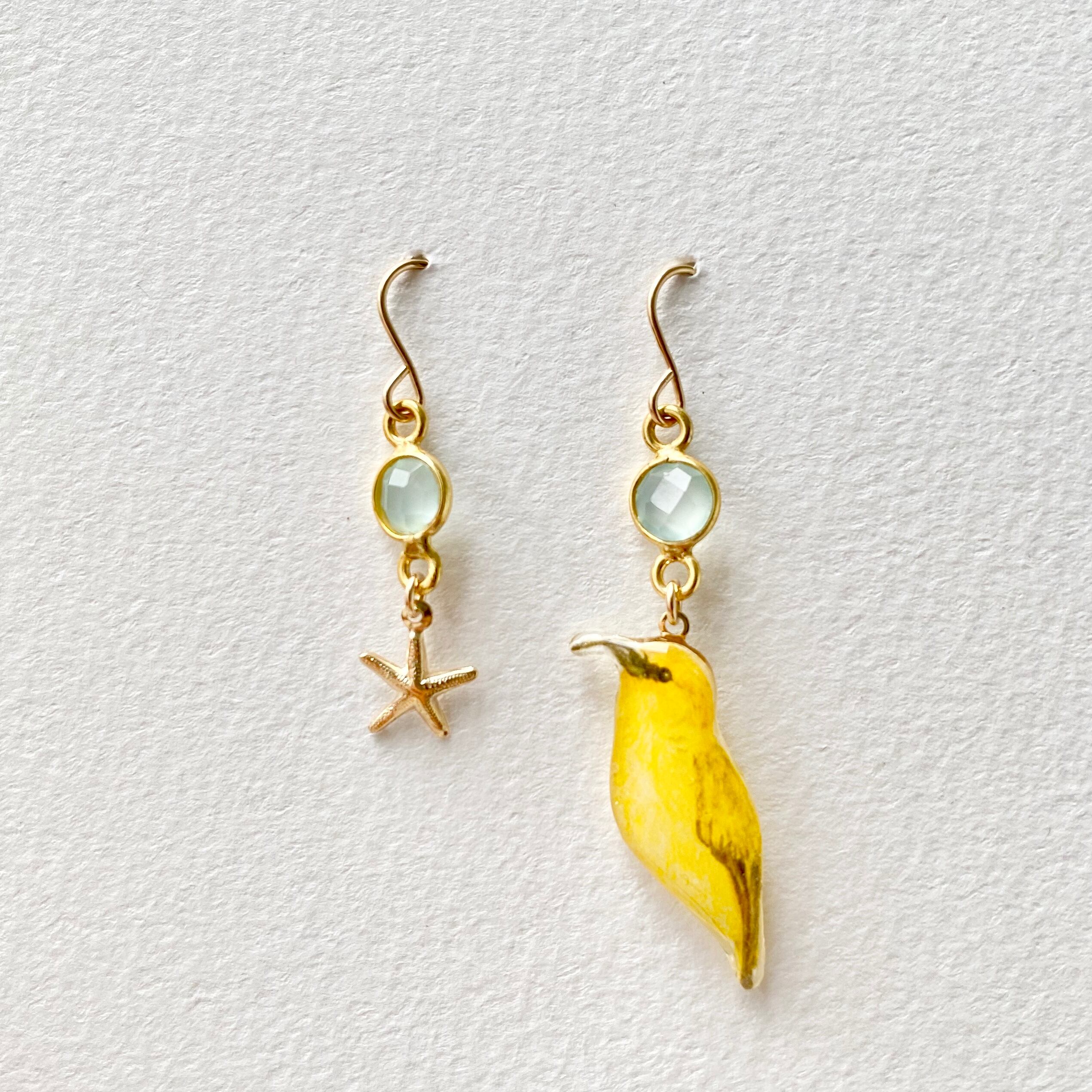 ハワイ島にしか生息していない固有種。絶滅危惧種の鳥さんアキアポラーアウ(ハワイ語)のアクセサリーです。天然石のカルセドニー付でエレガントな一品です。