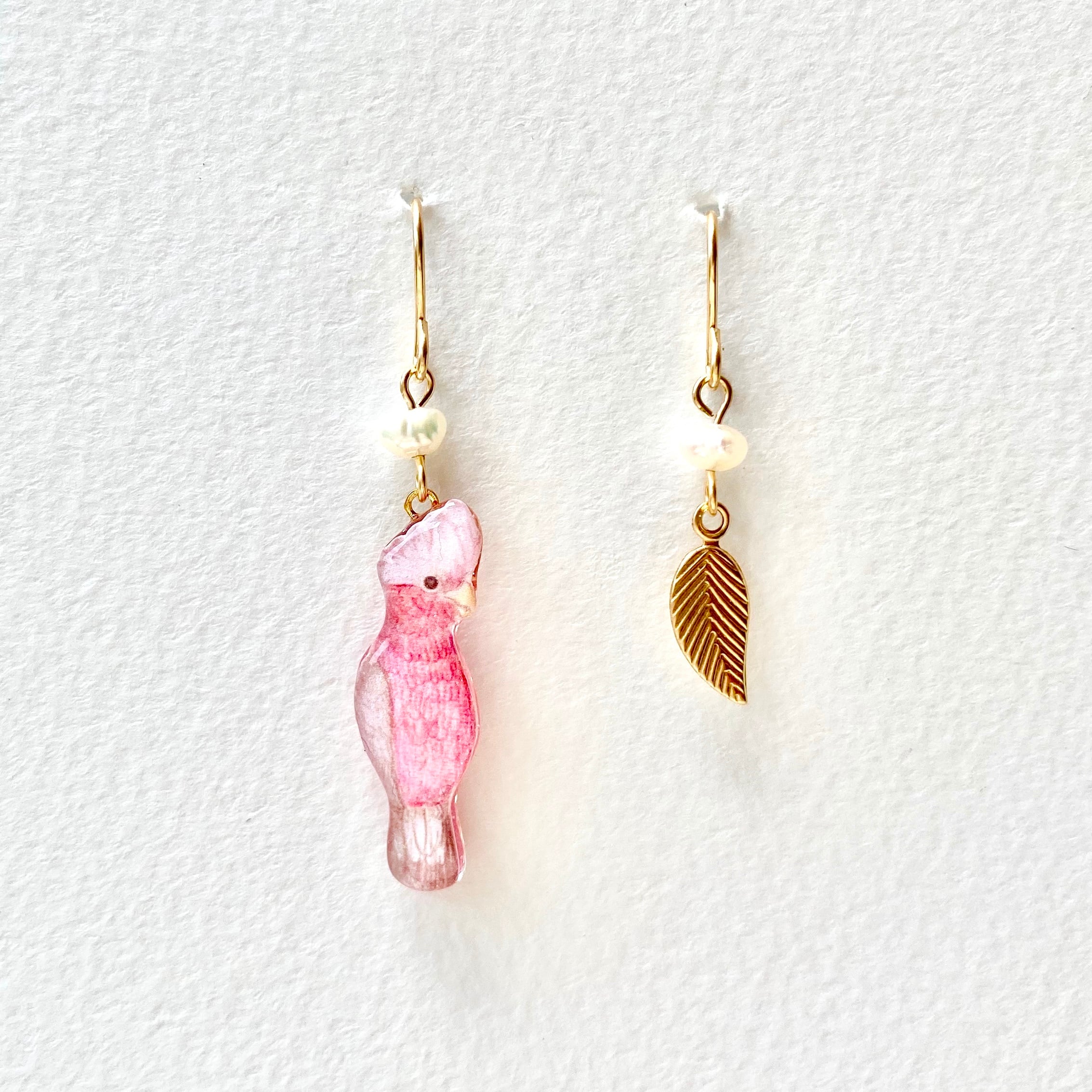 ピンクとグレーの配色がステキな鳥、モモイロインコさんのピアスです。