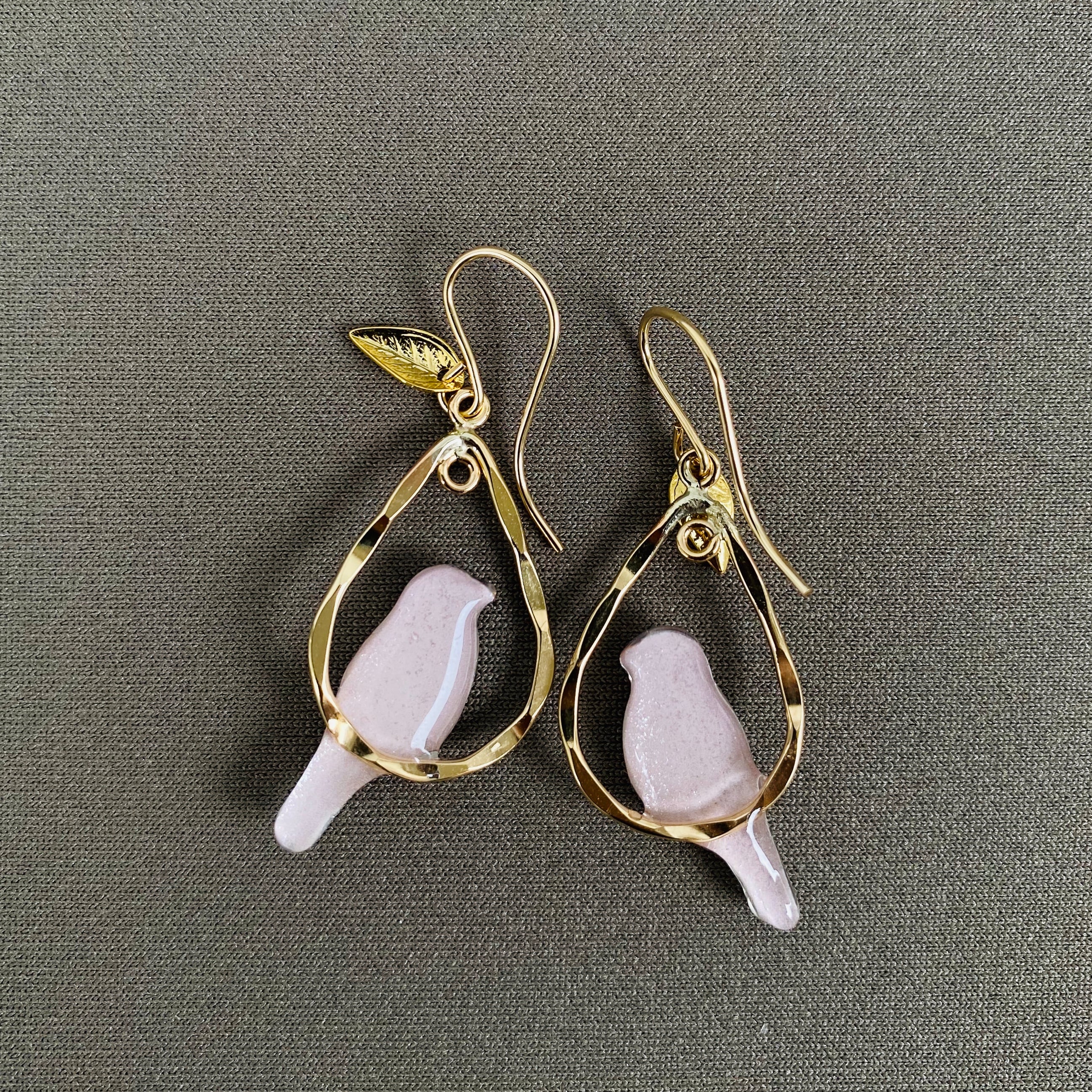 小ぶりでさりげなくつけられる、桜文鳥さんのピアスです。