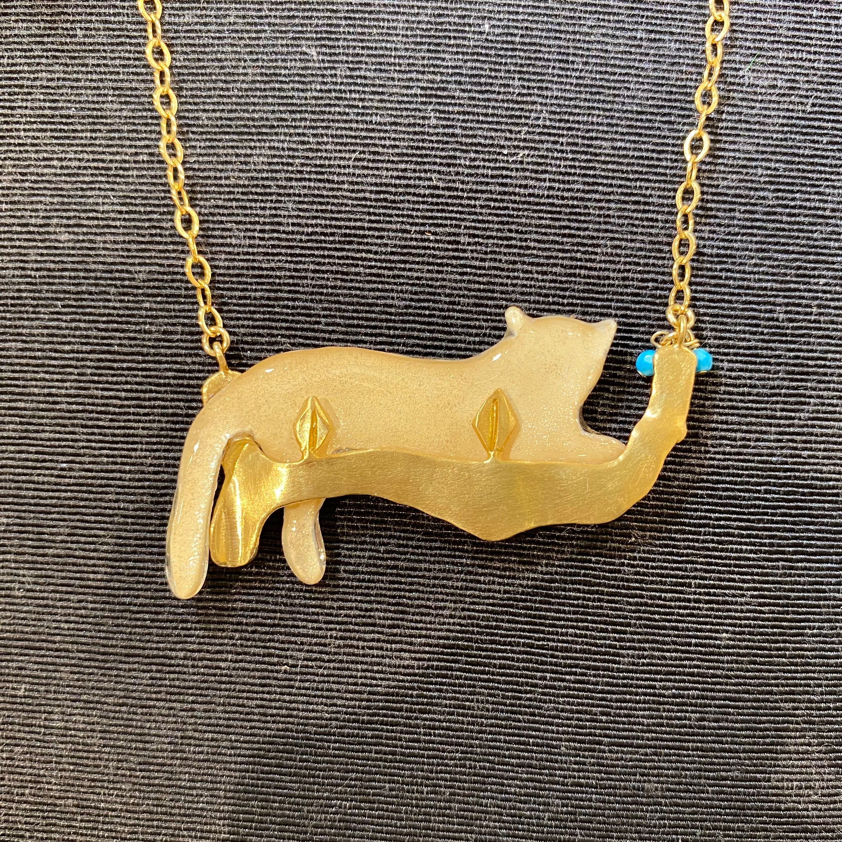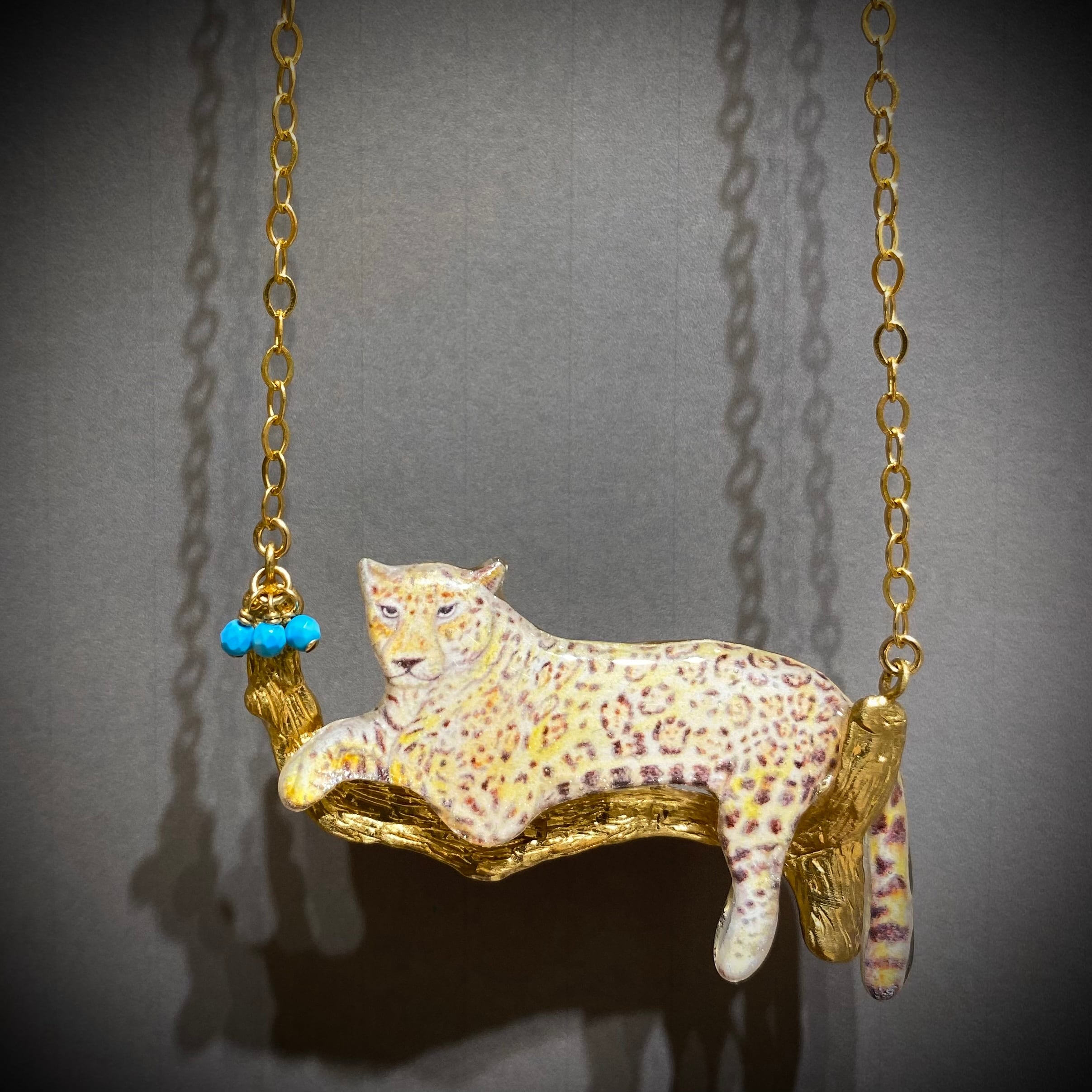 木の上に優雅に寝そべる存在感のあるジャガーさんの大きめネックレスです。