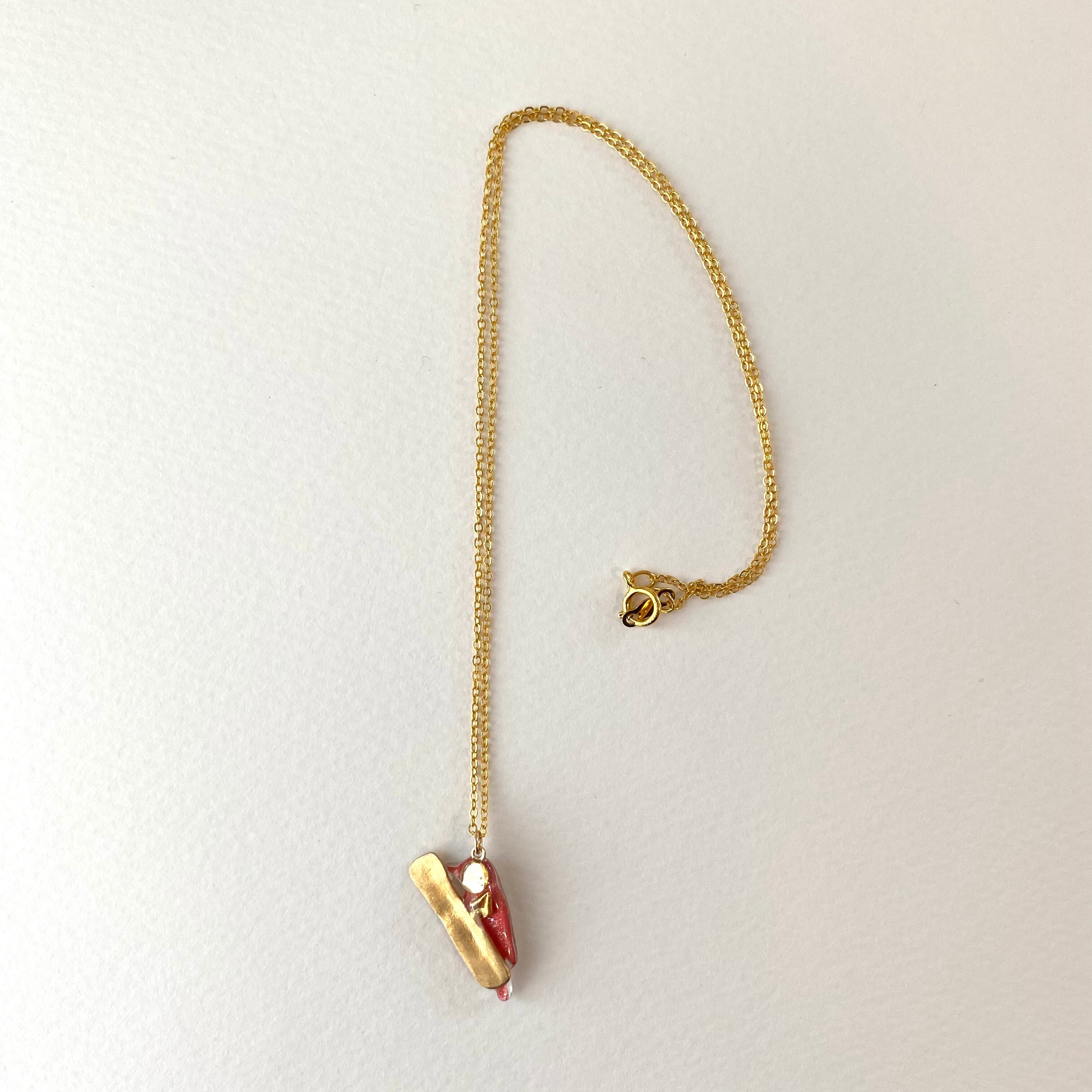 キツツキのアカゲラさん。木をつついているアカゲラさんをモチーフにしたネックレスです。