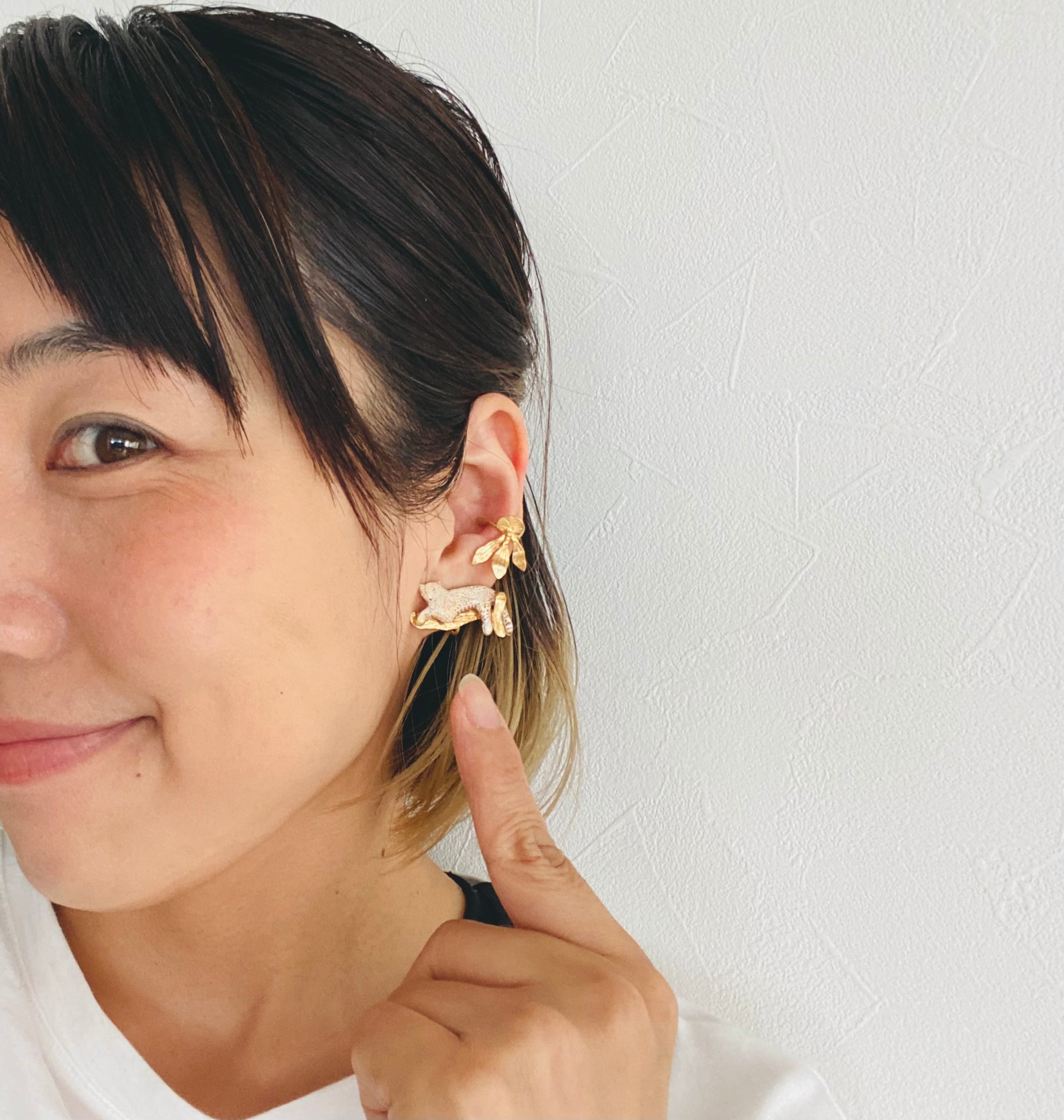 着生シダ植物ビカクシダのイヤーカフです。
