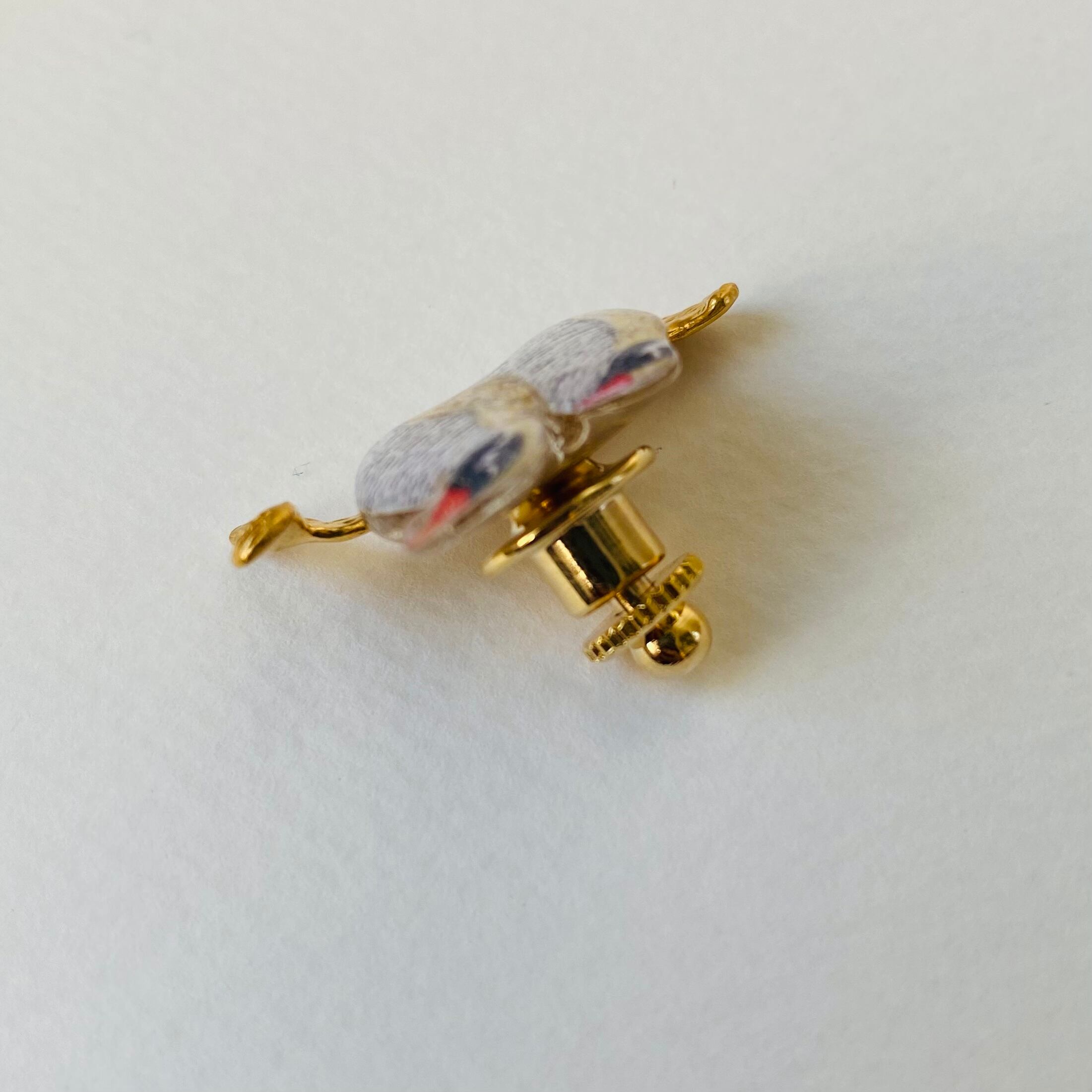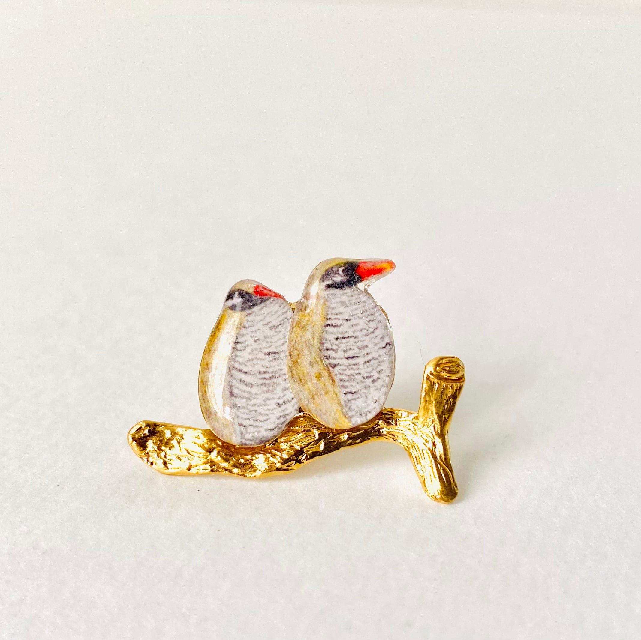 木の上で仲良くよりそう沖縄に生息しているヤンバルクイナのピンブローチです。