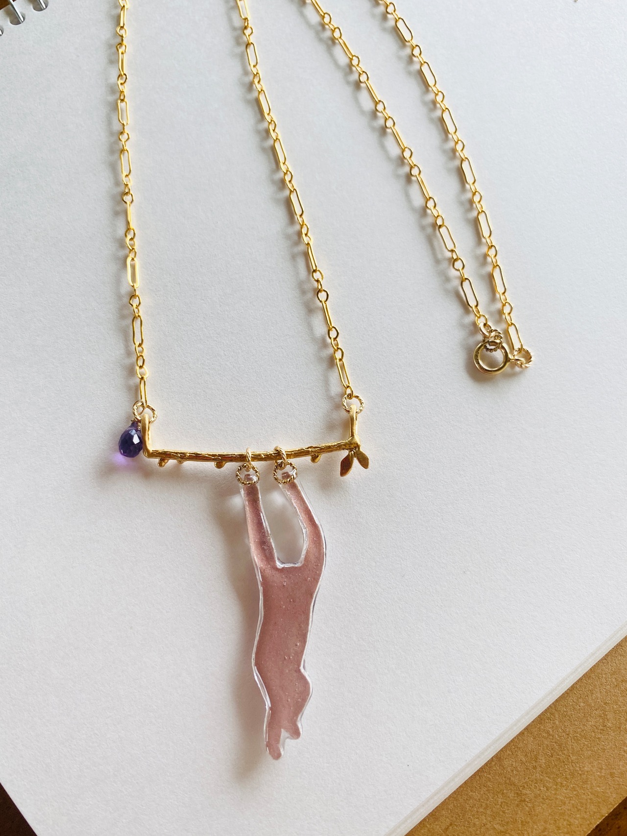 チェーン/k14gf 、パーツ/樹脂、木/silver925+k18コーティング、アメジスト