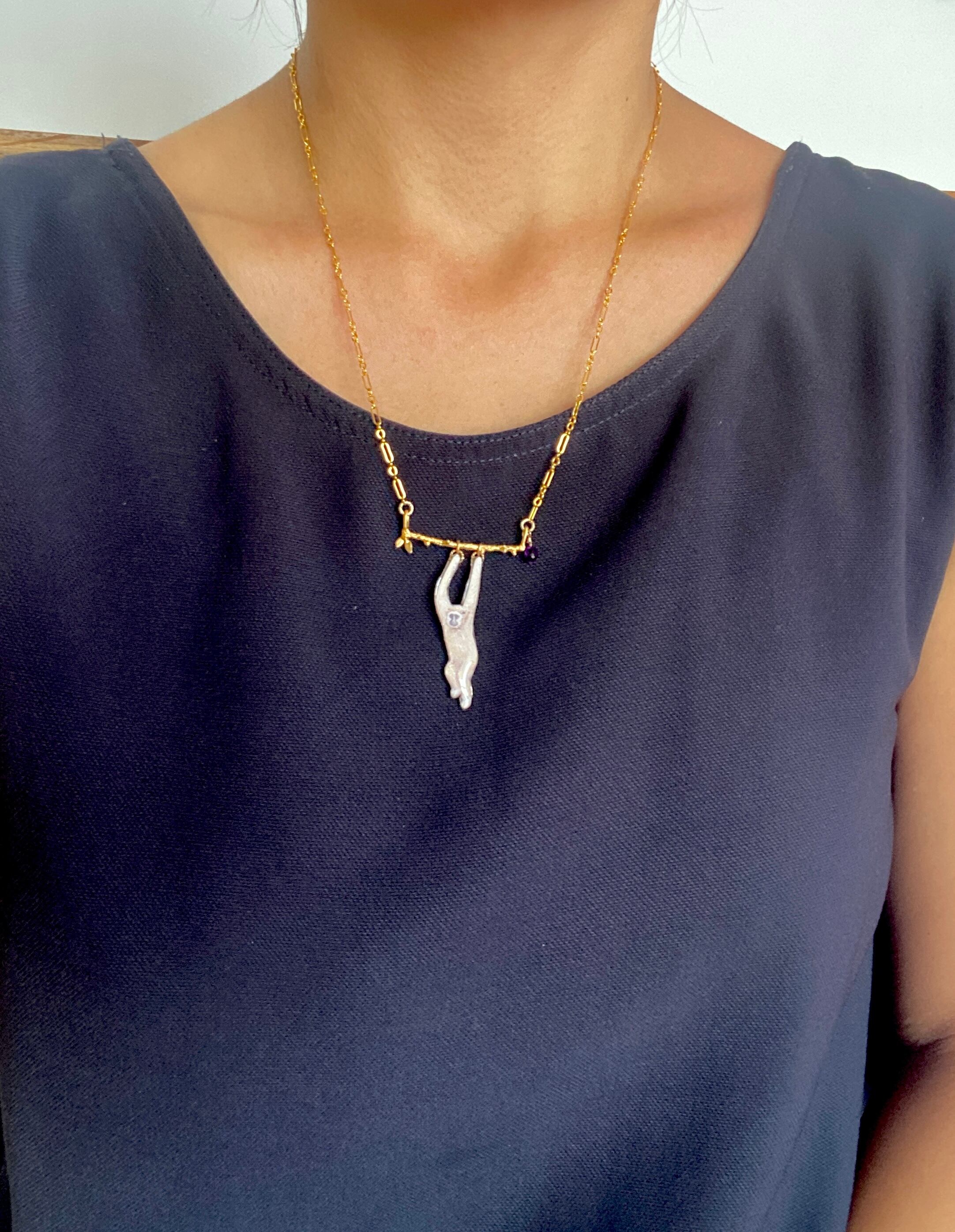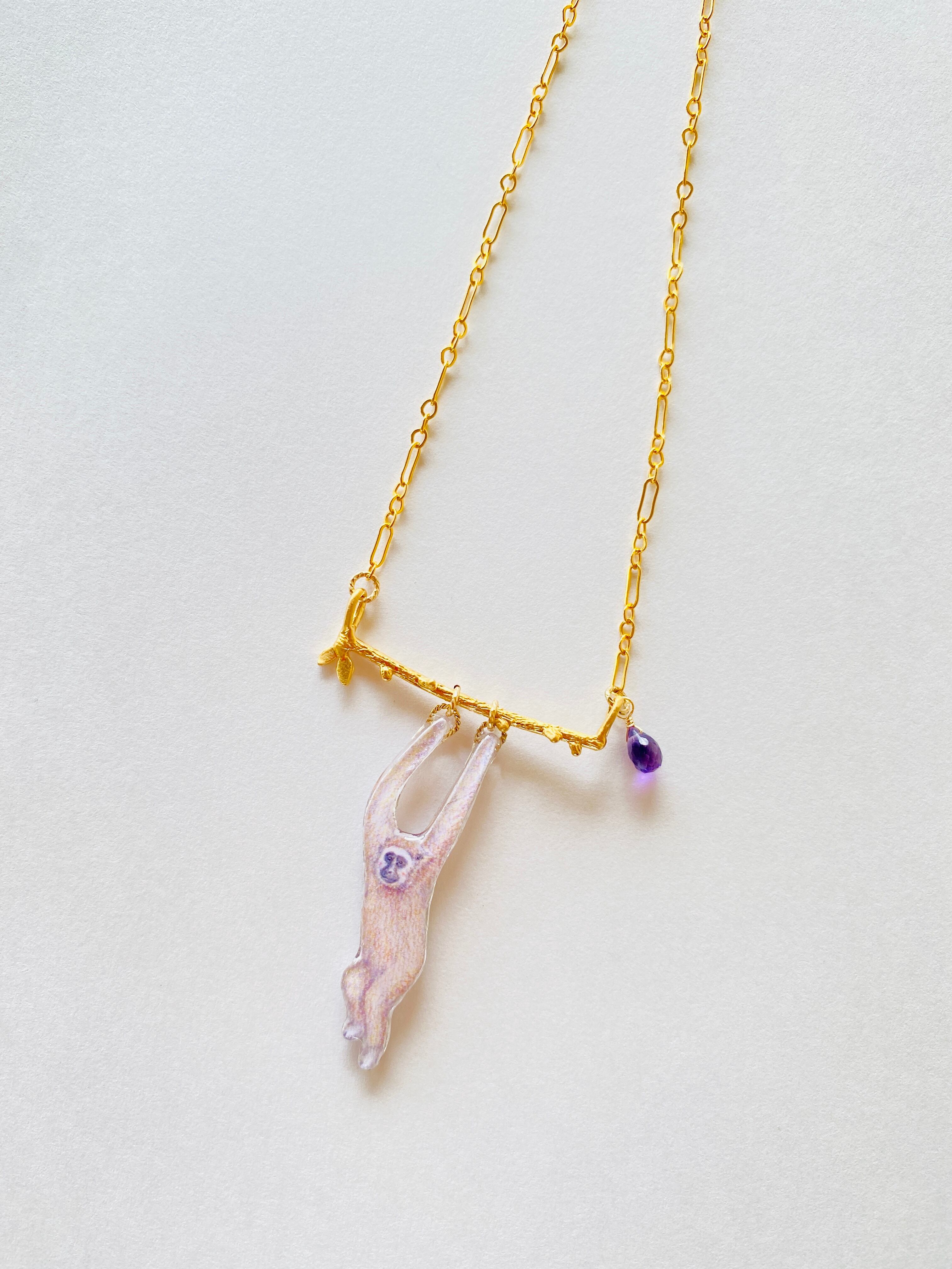おしりがかわいいシロテテナガザルのネックレスです。アメジスト付き。