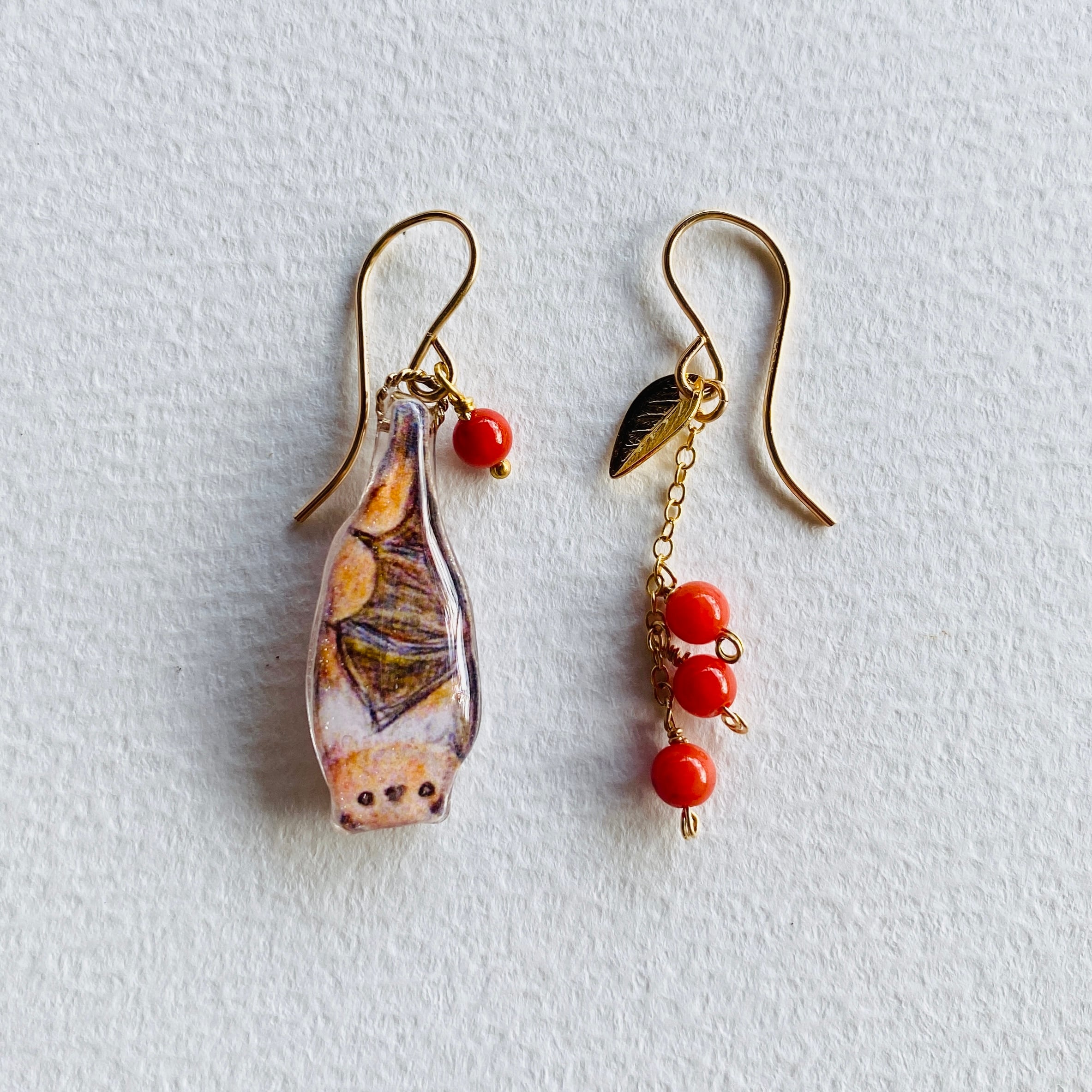 西表島で出会った、デイゴの花にやってきた八重山オオコウモリ。デイゴの花はサンゴで表現いたしました。