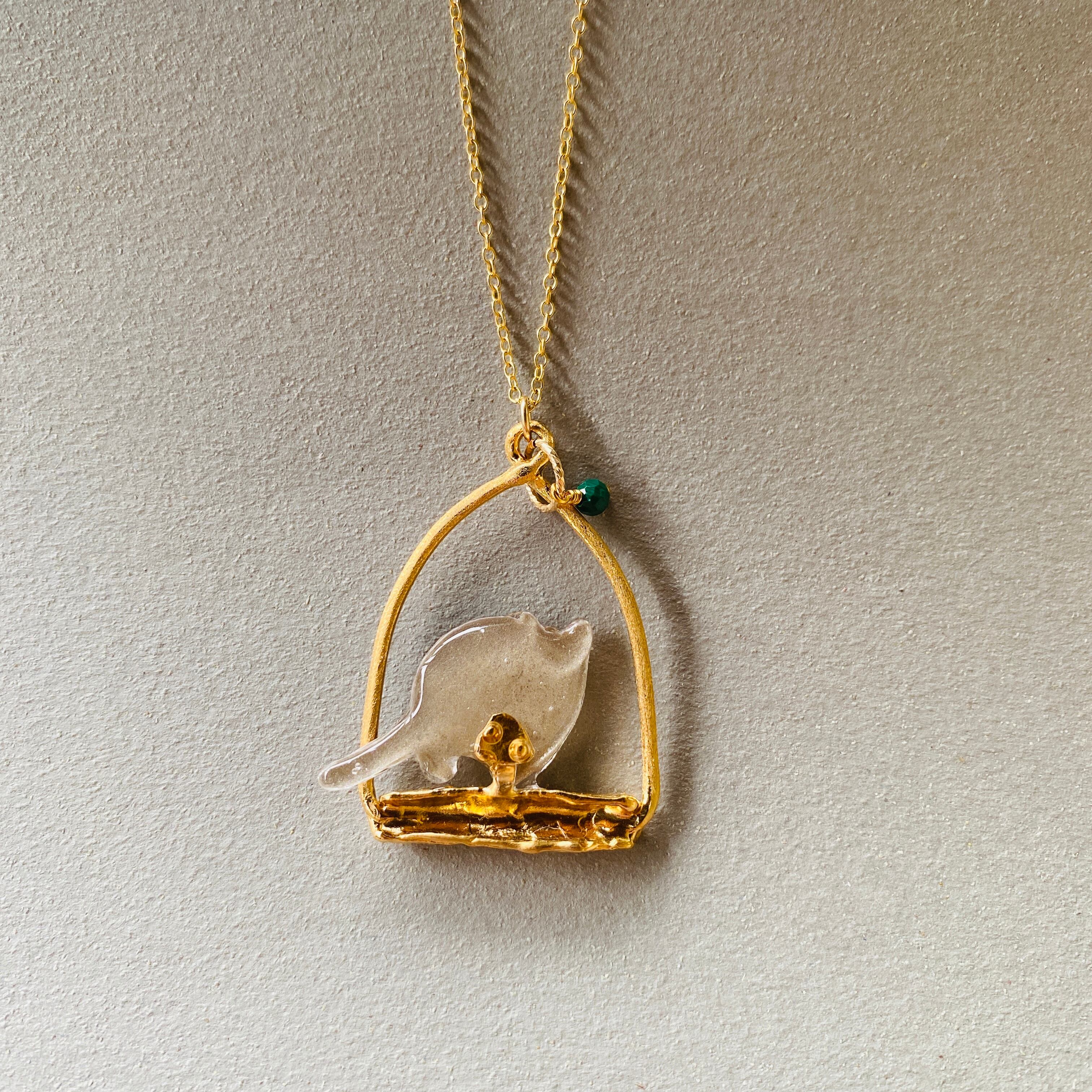 チェーン/k14gf 、パーツ/樹脂、枠/silver925+k18コーティング、天然石/マラカイト