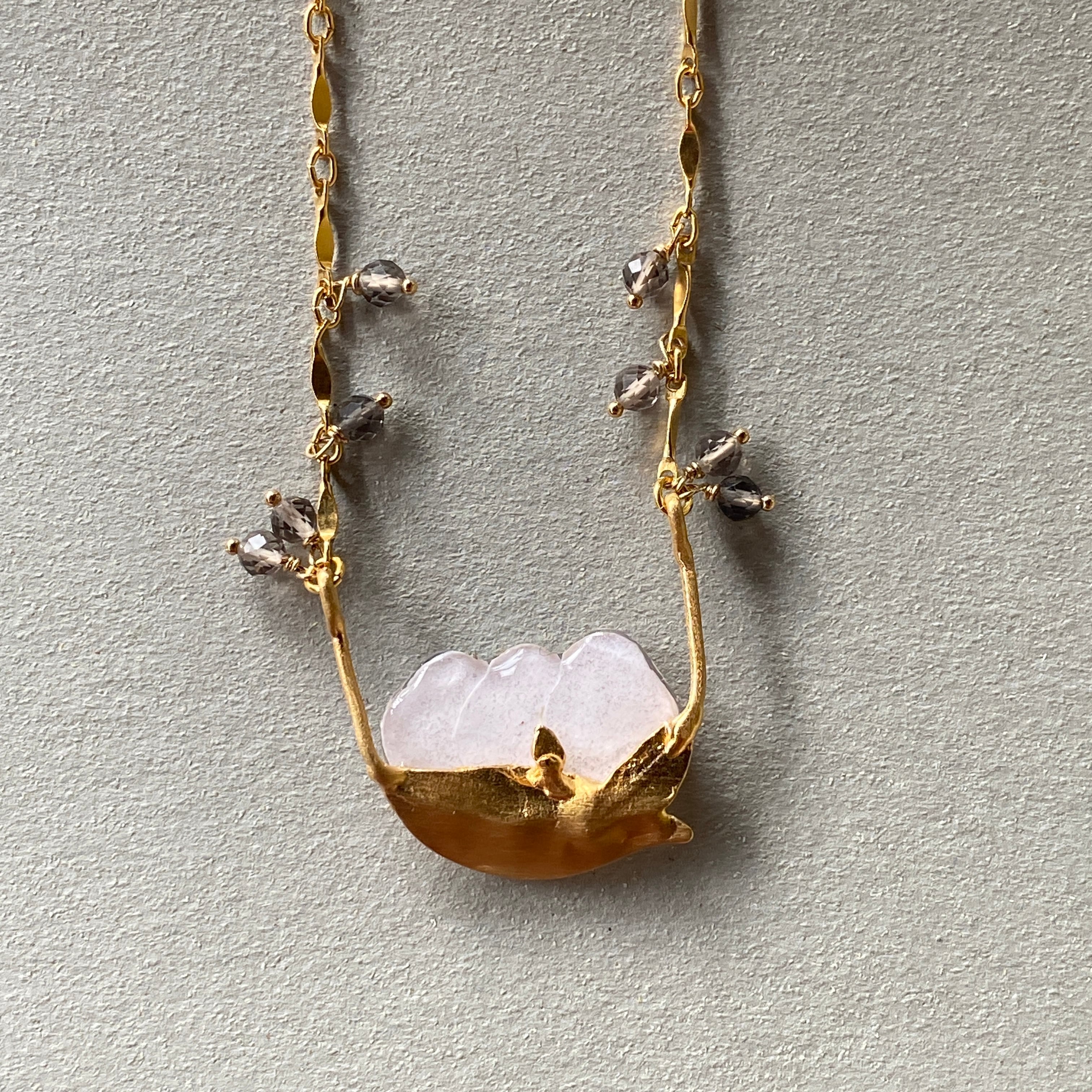 ネックレス/K14GF パーツ/樹脂、枠/silver925+k18コーティング、天然石/スモーキークオーツ